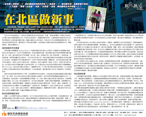 In the 2021 Policy Address, the government pointed out the need to focus on the development of the "Northern Metropolis" covering an area of 300 square kilometers. Once fully developed, the Northern Metropolis is expected to accommodate 2.5 million people, which is about one-third of Hong Kong's current population. In response to the development opportunities in the Northern Metropolis, HKCNP has initiated "Transforming lives in Community, Renovating Churches in North District─ Kingdom Assist Based Community Development Course (KABCD)" in the North District in 2021. We invited Rev Li Hoi Ping, the chairman of the Christian North District Chinese Association, to serve as the convenor of the North District Network, connecting with over 60 churches in the North District to respond to future development needs. We are grateful that HKCNP North District Network has established sustainable and ongoing community transformation initiatives. Below are the latest news and events, and we sincerely invite you to participate: