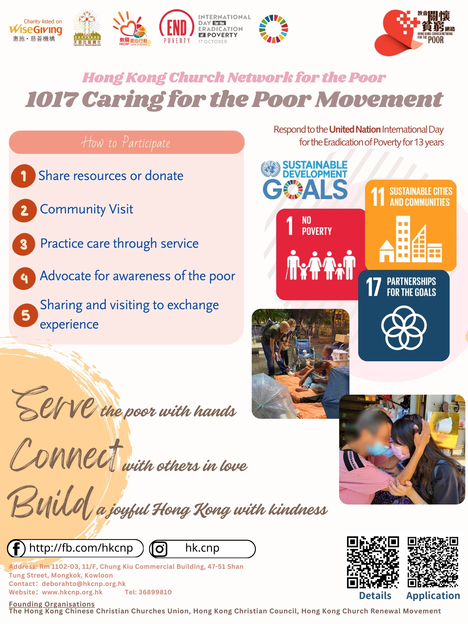 - 將你的參與過程發佈在社交媒體,並標註 #1017關懷貧窮運動 @HKCNP,以激勵更多人加入這個行動!